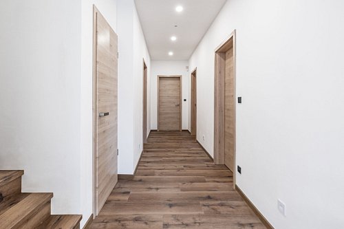 Nabízíme k prodeji novostavbu řadového rodinného domu v obci Čerčany u Benešova. Dům je nyní před dokončením a kolaudace je plánovaná na prosinec 2025. Dům bude plně funkční a připraven k nastěhování: kompletně hotové koupelny (dlažby, obklady, zařizovací předměty včetně baterií), podlahové krytiny, interiérové dveře včetně kování, obložení vnitřního schodiště a vnitřní parapety.